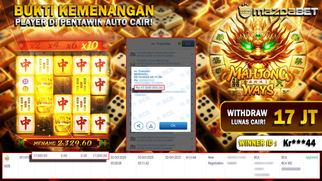 BUKTI KEMENANGAN DAN WITHDRAW 02 Oktober 2025 Di Game Mahjong Ways WD 17 JUTA