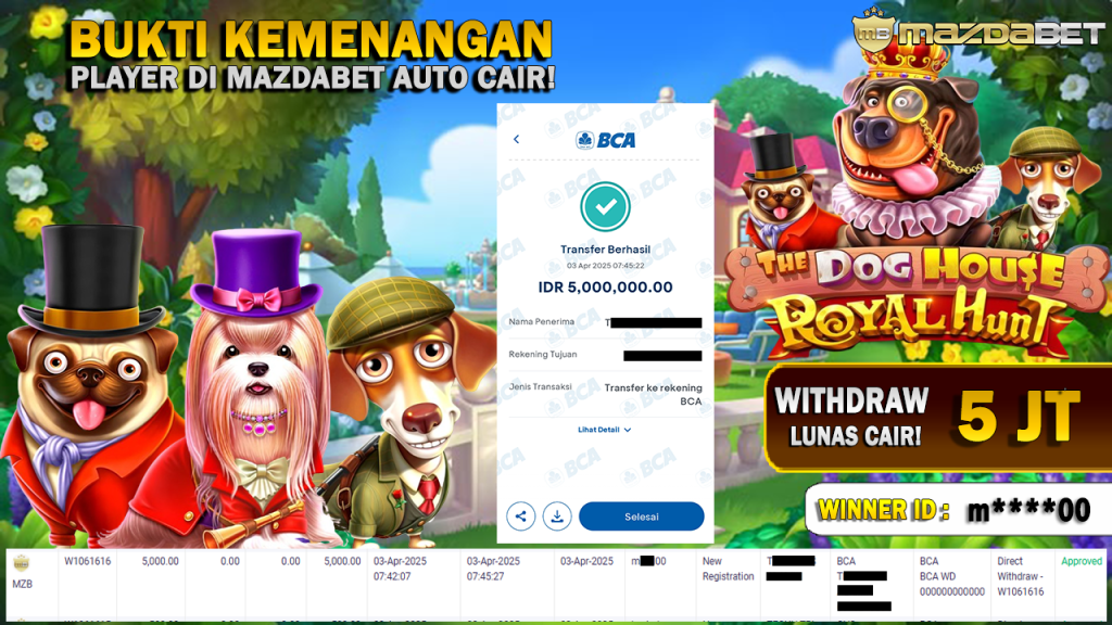 Bukti Kemenangan Dan Withdraw 03 April 2025 Di Game The Dog House – Royal Hunt WD 5 Juta