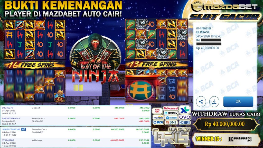 BUKTI KEMENANGAN DAN WITHDRAW 04 APRIL 2026 Di Game Way of Ninja ( Slot88 x PP ) WD 40 JUTA