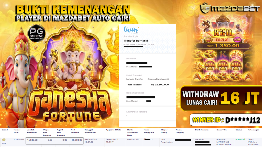 BUKTI KEMENANGAN DAN WITHDRAW 04 Oktober 2025 Di Game Ganesha Gold WD 16 JUTA