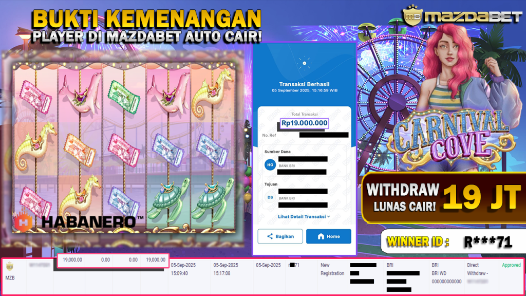 Bukti Kemenangan Dan Withdraw 05 September 2025 Di Game carnival cove WD 19 JUTA