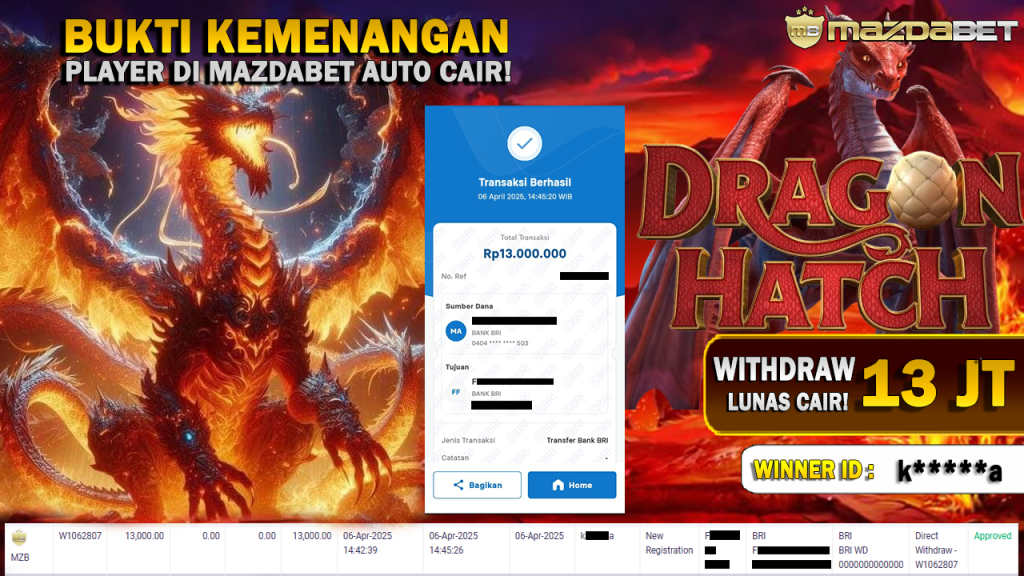 Bukti Kemenangan Dan Withdraw 06 April 2025 Di Game Dragon Hatch WD 13 Juta