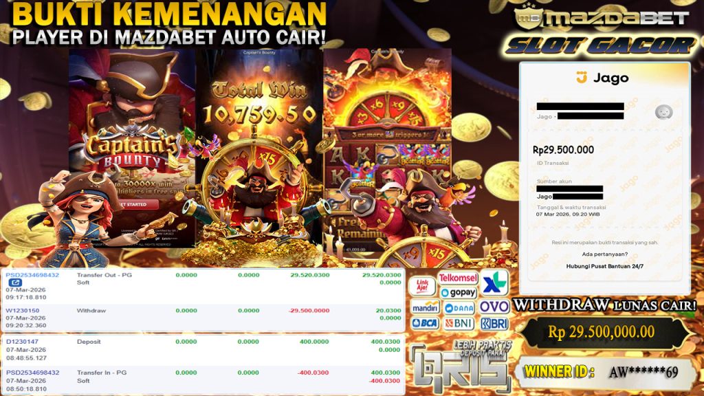 BUKTI KEMENANGAN DAN WITHDRAW 07 MARET 2026 Di Game Captain’s Bounty ( PG Soft ) WD 29.5 JUTA