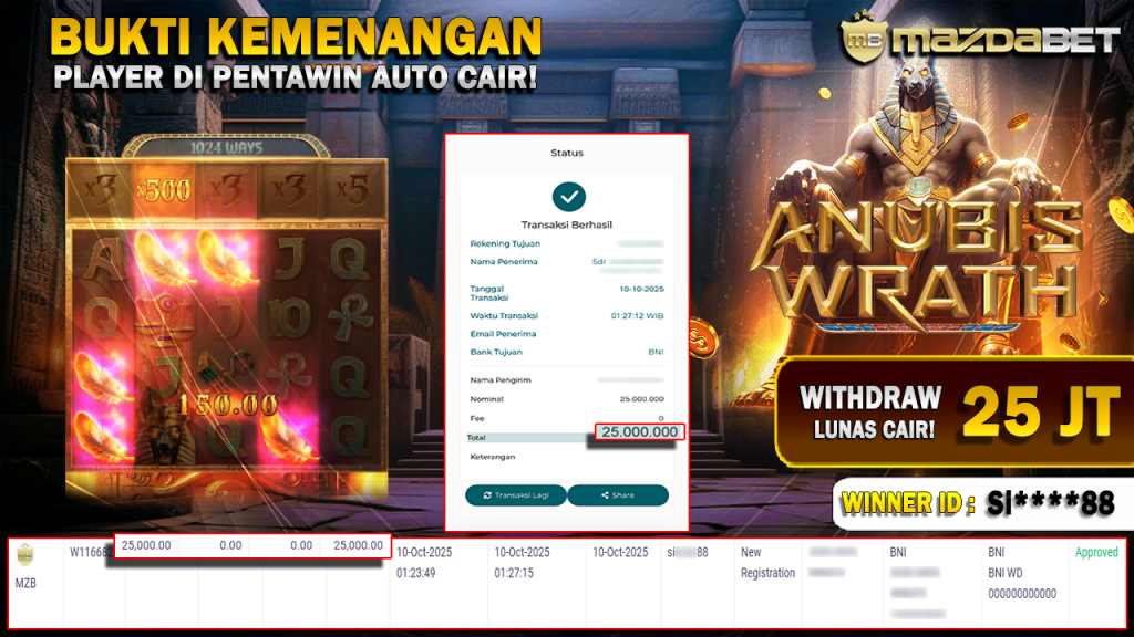 BUKTI KEMENANGAN DAN WITHDRAW 10 Oktober 2025 Di Game Anubis Wrath WD 25 JUTA
