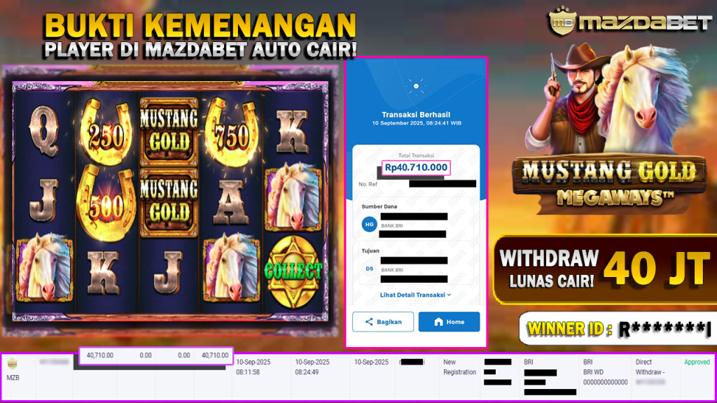 Bukti Kemenangan Dan Withdraw 10 September 2025 Di Game Mustang Gold™ WD 40 JUTA