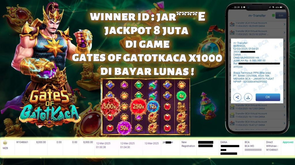 Bukti Kemenangan Dan Withdraw 12 Maret 2025 Di Game Gates Of Gatotkaca x1000 WD 8 Juta