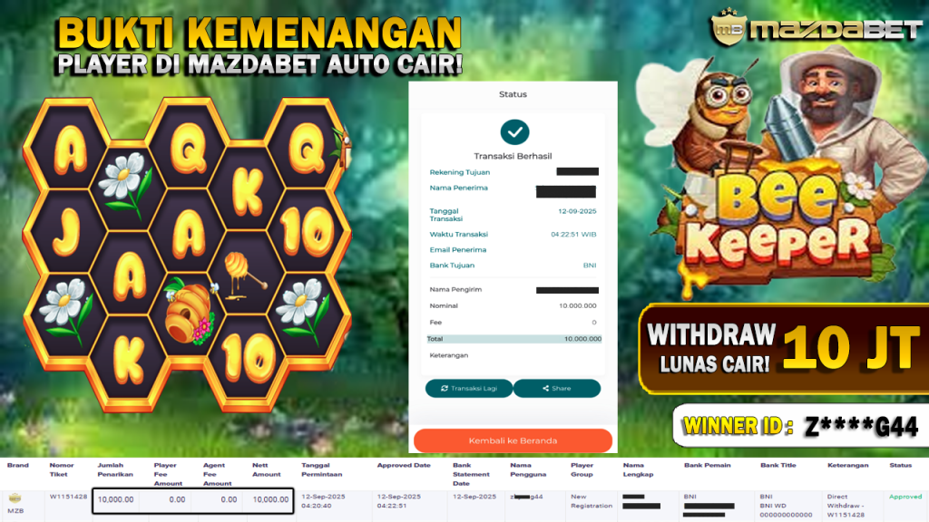Bukti Kemenangan Dan Withdraw 12 September 2025 Di Game Bee Keeper WD 10 Juta
