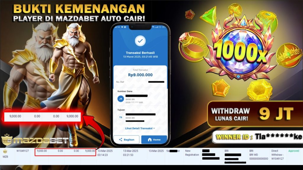 Bukti Kemenangan Dan Withdraw 13 Maret 2025 Di Gates Of Olympus X1000 WD 9 Juta