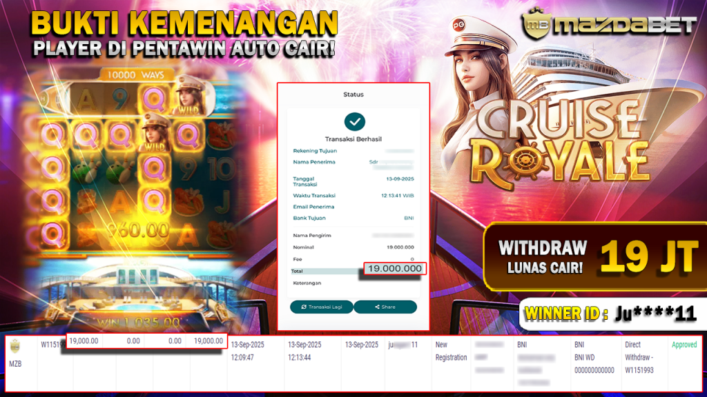 Bukti Kemenangan Dan Withdraw 13 September 2025 Di Game Cruise Royale WD 19 Juta