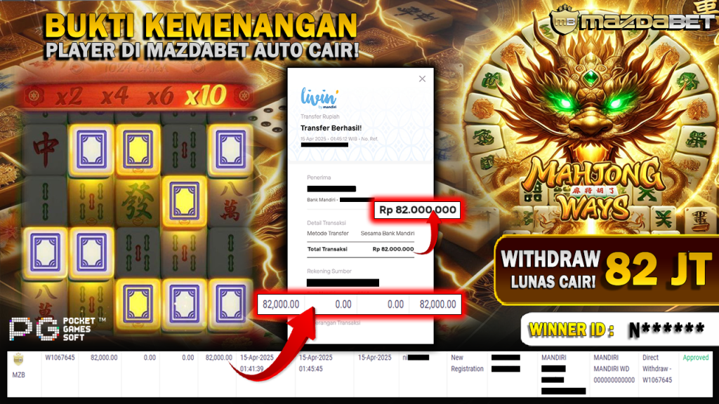 Bukti Kemenangan Dan Withdraw 15 April 2025 Di Game Mahjong Ways WD 82 Juta