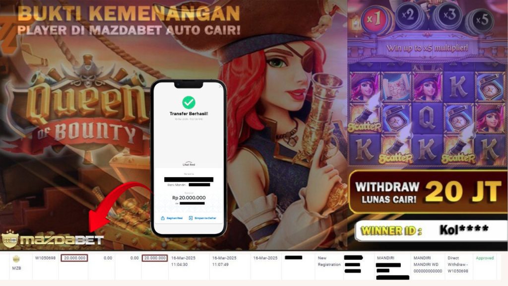 Bukti Kemenangan Dan Withdraw 16 Maret 2025 Di Game Queen of Bounty 20 Juta