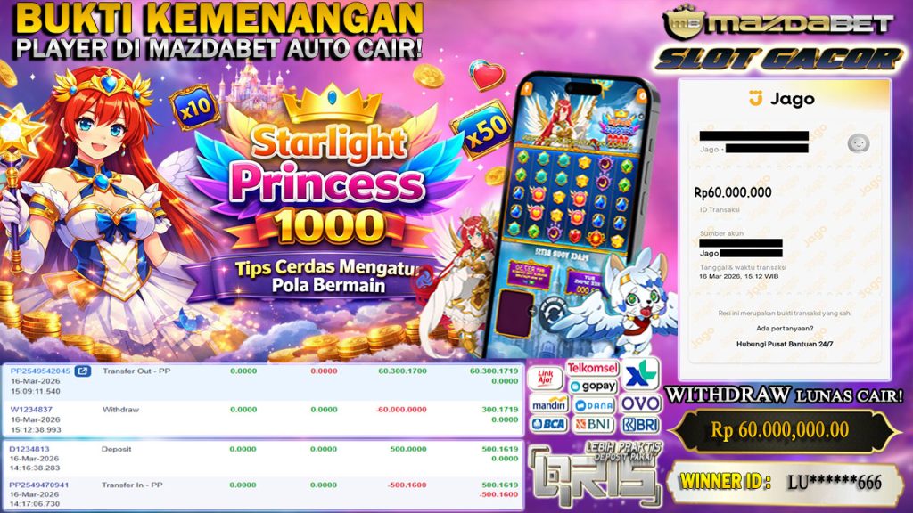 BUKTI KEMENANGAN DAN WITHDRAW 16 MARET 2026 Di Game starlight princess 1000 ( Pragmatic Play ) WD 60 JUTA
