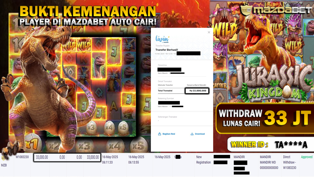 Bukti Kemenangan Dan Withdraw 16 MEI 2025 Di Game Jurassic Kingdom 33 Juta