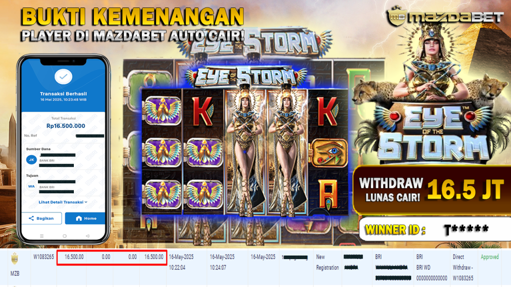 Bukti Kemenangan Dan Withdraw 16 MEI 2025 Di Game Eye of the Storm WD 16.5 Juta