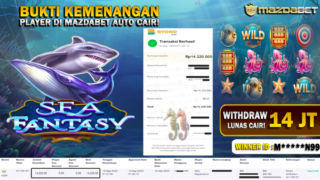 Bukti Kemenangan Dan Withdraw 16 September 2025 Di Game Sea Fantasy WD 14 Juta