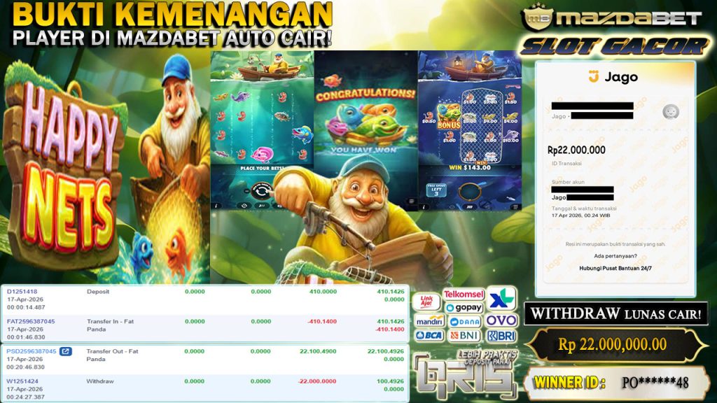 BUKTI KEMENANGAN DAN WITHDRAW 17 APRIL 2026 Di GAME Happy Nets ( Fat Panda ) WD 22 JUTA