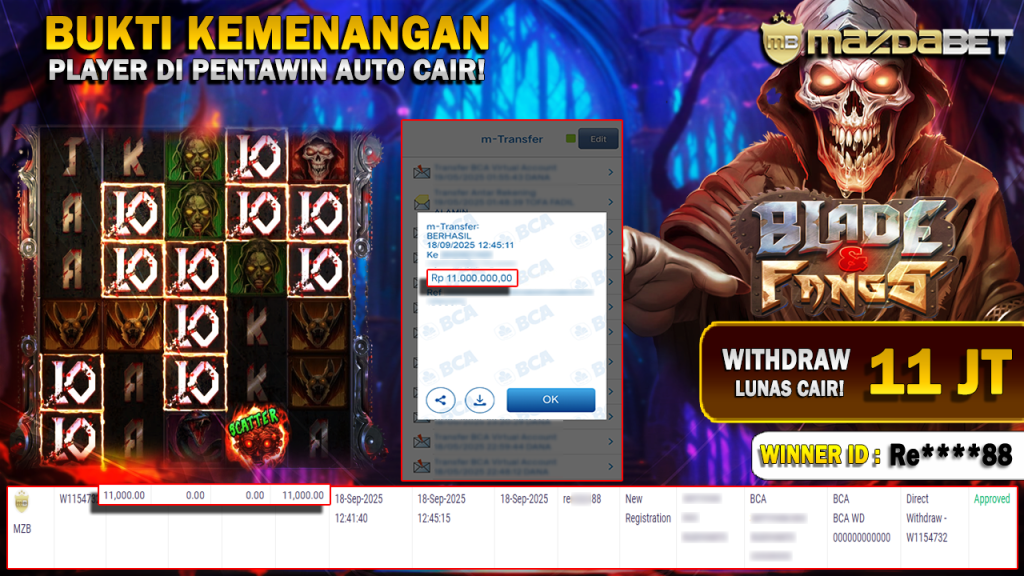 Bukti Kemenangan Dan Withdraw 18 September 2025 Di Game Blade & Fang WD 11 Juta