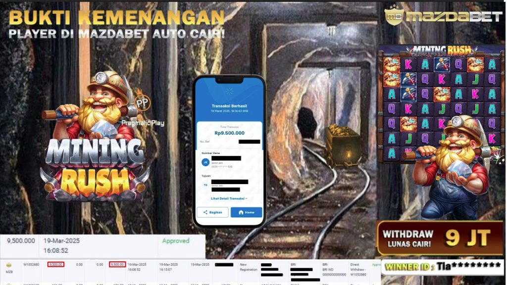 Bukti Kemenangan Dan Withdraw 19 Maret 2025 Di Game Mining Rush WD 9 Juta