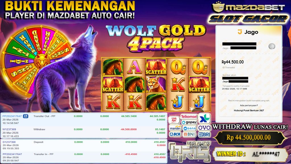 BUKTI KEMENANGAN DAN WITHDRAW 20 MARET 2026 Di Game Wolf Gold 4 Pack ( PRAGMATIC PLAY ) WD 44.5 JUTA