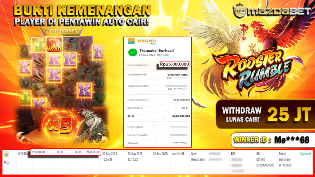 Bukti Kemenangan Dan Withdraw 20 September 2025 Di Game Rooster Rumble WD 25 Juta