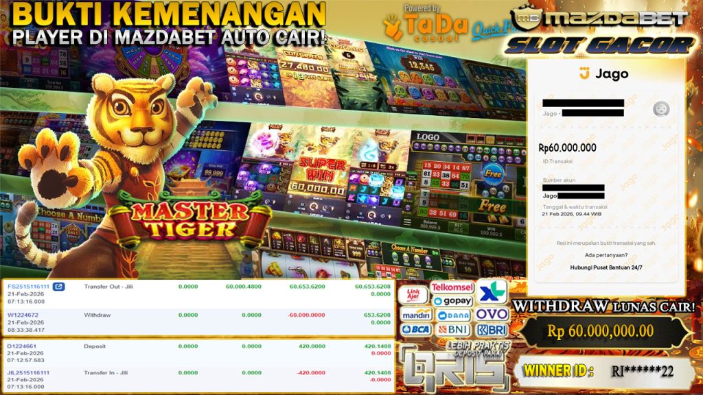 BUKTI KEMENANGAN DAN WITHDRAW 21 FEBRUARI 2026 Di Game Master Tiger WD 60 JUTA