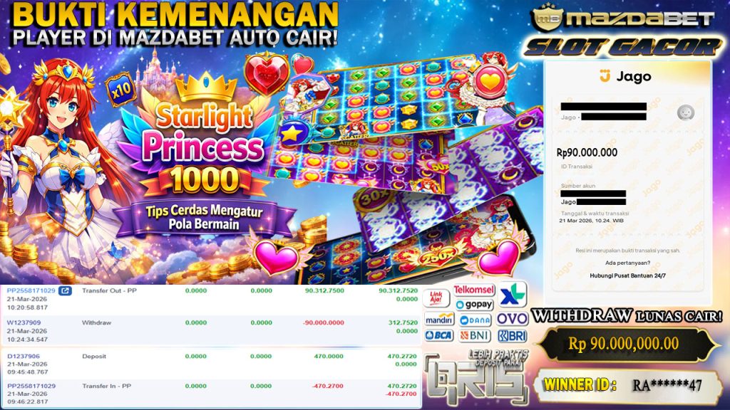 BUKTI KEMENANGAN DAN WITHDRAW 21 MARET 2026 Di Game starlight princess 1000 ( PRAGMATIC PLAY ) WD 90 JUTA