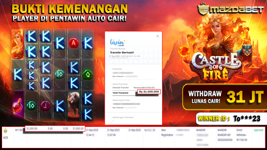 Bukti Kemenangan Dan Withdraw 21 September 2025 Di Game Castel Of Fire WD 31 Juta