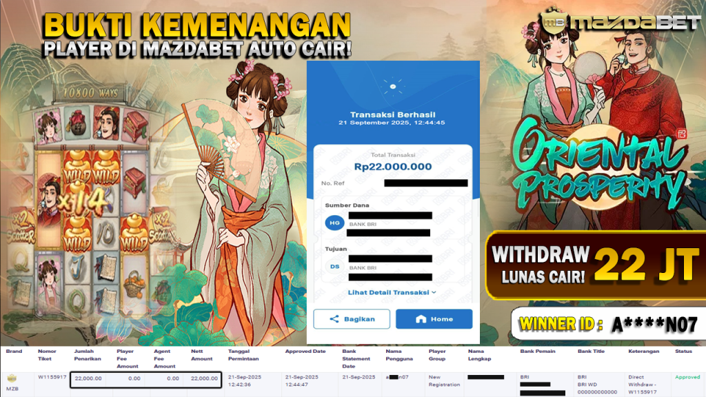 Bukti Kemenangan Dan Withdraw 21 September 2025 Di Game Oriental Prosperity WD 22 Juta