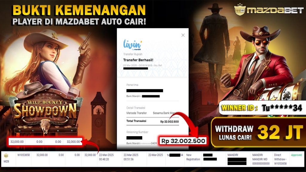 Bukti Kemenangan Dan Withdraw 22 Maret 2025 Di Game Wild Bounty Showdown WD 32 Juta