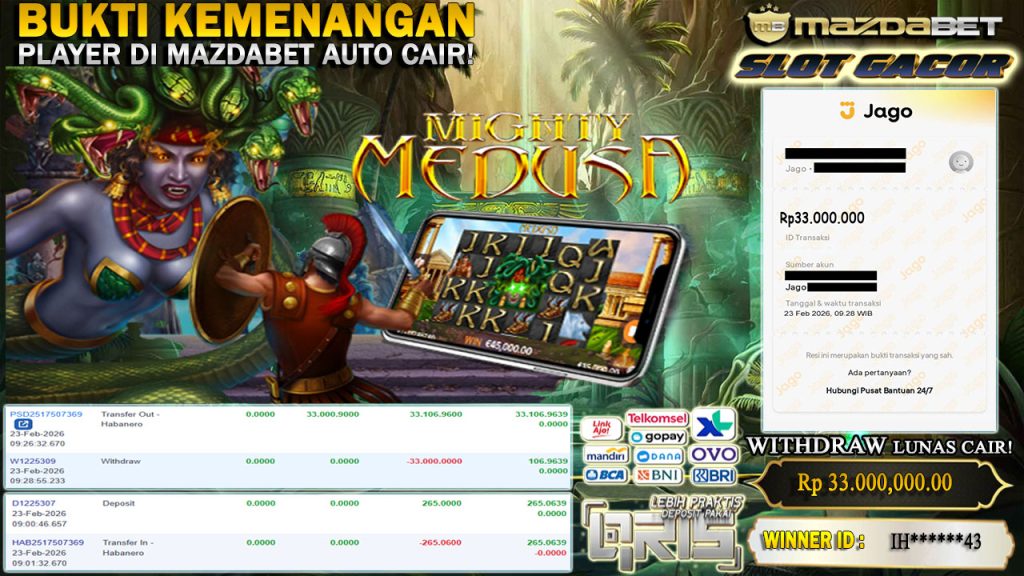 BUKTI KEMENANGAN DAN WITHDRAW 23 FEBRUARI 2026 Di Game Mighty Medusa WD 33 JUTA