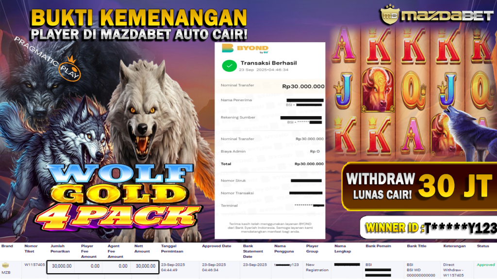 Bukti Kemenangan Dan Withdraw 23 September 2025 Di Game Wolf Gold 4 Pack WD 30 Juta