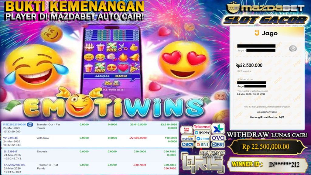 BUKTI KEMENANGAN DAN WITHDRAW 24 MARET 2026 Di Game Emotiwins ( Fat Panda ) WD 22.5 JUTA