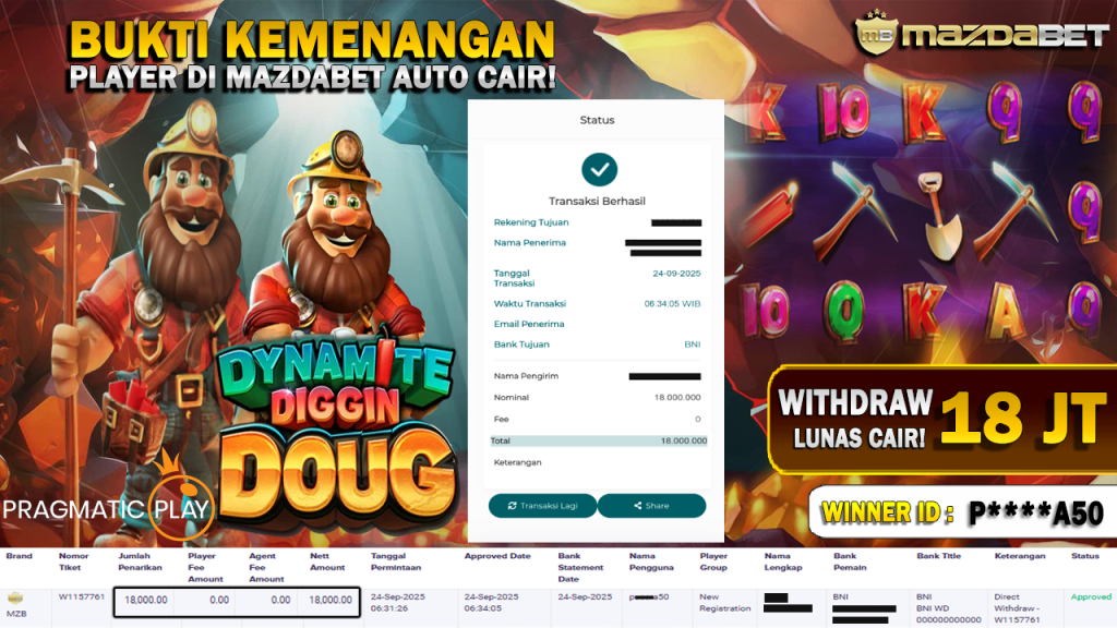 Bukti Kemenangan Dan Withdraw 24 September 2025 Di Game Dynamite Diggin Doug WD 18 Juta