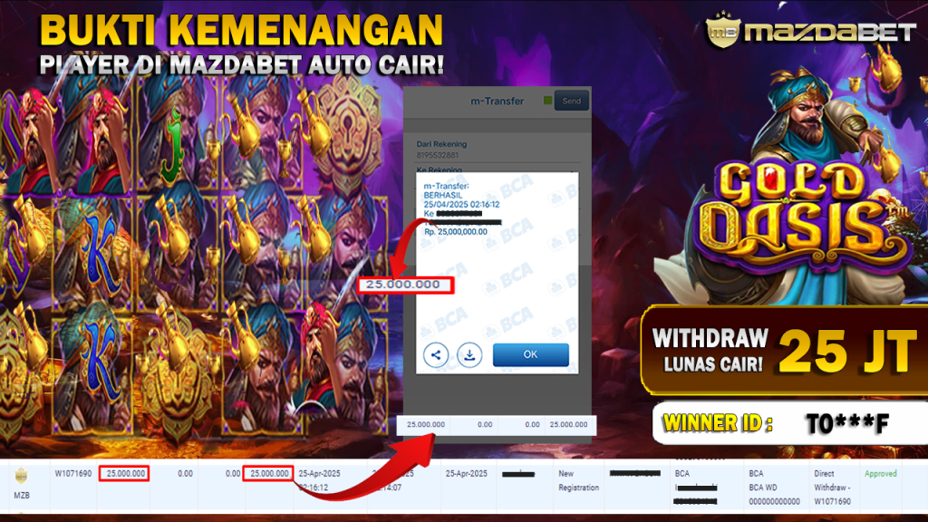 Bukti Kemenangan Dan Withdraw 25 April 2025 Di Game Gold Oasis PRAGMATIC PLAY WD 25 Juta