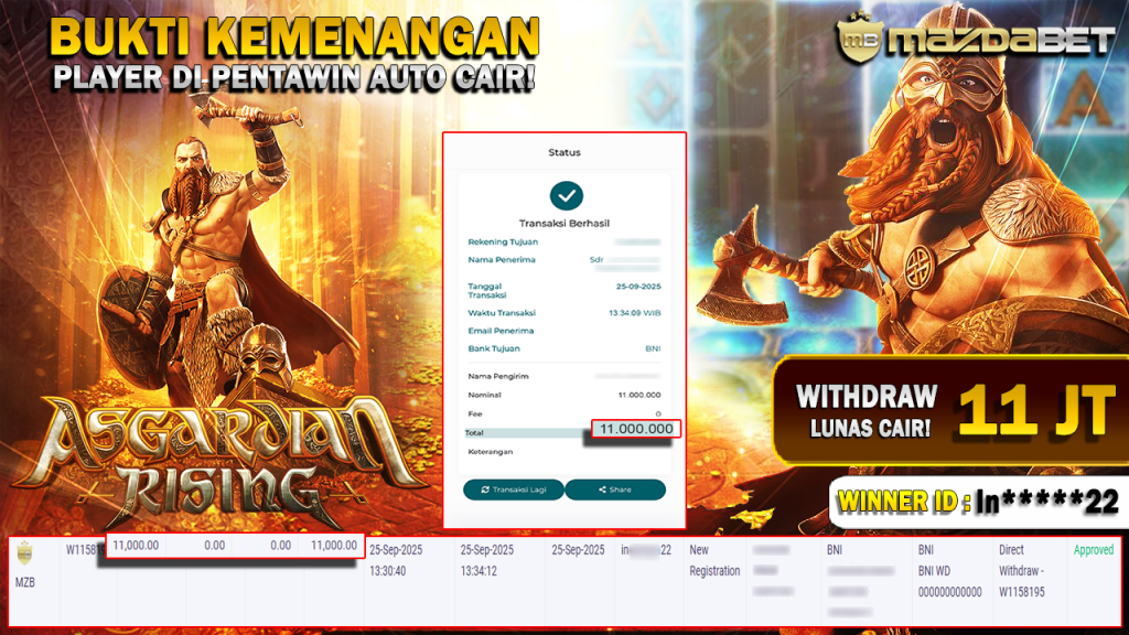Bukti Kemenangan Dan Withdraw 25 September 2025 Di Game Asgardian Rising WD 11 Juta