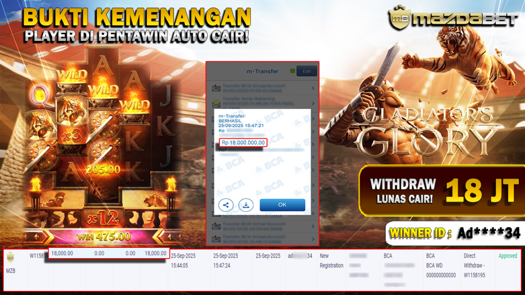 Bukti Kemenangan Dan Withdraw 25 September 2025 Di Game Gladiator’s Glory WD 18 Juta