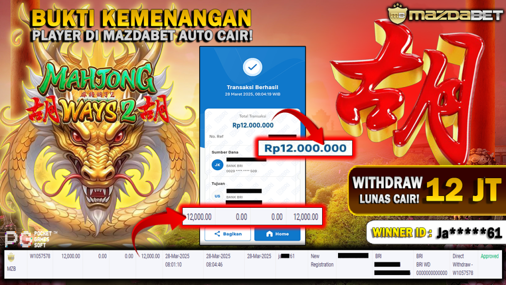 Bukti Kemenangan Dan Withdraw 28 Maret 2025 Di Game Mahjong Ways 2 WD 12 Juta