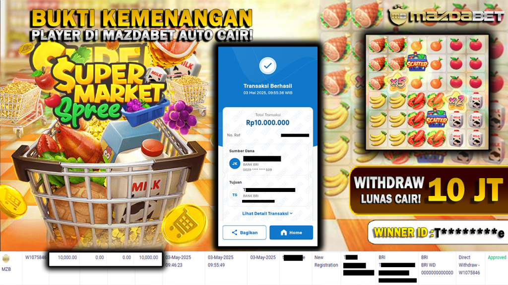 Bukti Kemenangan Dan Withdraw 3 MEI 2025 Di Game Supermarket Spree WD 10 Juta