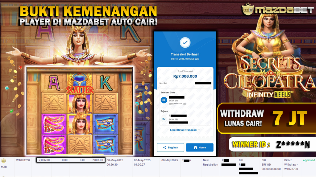 Bukti Kemenangan Dan Withdraw 8 MEI 2025 Di Game Secret of Cleopatra WD 7 Juta