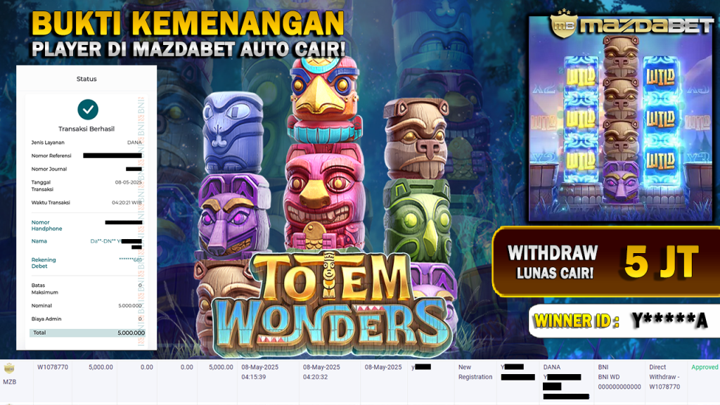 Bukti Kemenangan Dan Withdraw 8 MEI 2025 Di Game Totem Wonders WD 5 Juta